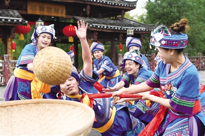 12月24日,广西罗城仫佬族自治县东门镇石围古村举行舞草龙、抢仫佬竹球、跳仫佬族风情舞、展示仫佬草编技艺等多彩文旅活动,喜迎新年到来。