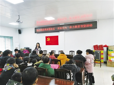 1月4日,融水苗族自治县易地扶贫搬迁点——融水镇苗美家园社区开展“小手牵大手 脱贫路上大步走”普通话培训活动,120名小学生及其家长参加了培训。通过开展培训帮助社区内不通晓汉语言的少数民族困难群众克服语言障碍,帮助他们缓解因为语言交流不畅通而与外界交流难、学习先进技术难、外出务工难等问题。