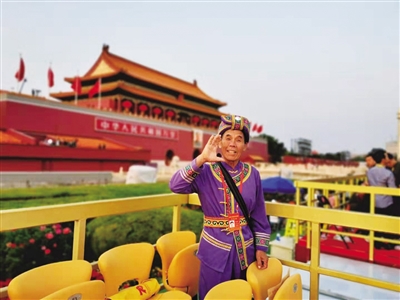 “千棵青松共一岭,万根翠竹同一林;民族团结实在好,恩恩爱爱一家亲。喜迎华诞七十春,民族团结一条心;抱团好像石榴籽,共筑美梦是复兴。”在采访接近尾声的时候,谢庆良老两口和大孙女一同唱响这首即兴创作的山歌,反映全国各族人民和谐相处、团结一心的幸福新生活,表达对祖国的美好祝福。