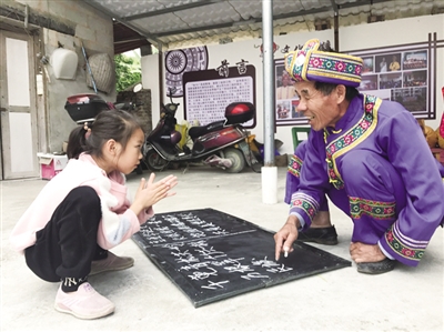“鲤鱼爱游滩头水,蜜蜂爱来花园飞。三姐故乡风景好,客来旅游不想归。”“朵朵鲜花鲜又鲜,朵朵彩云挂天边。民族文化要发展,山歌代代往后传。”这些山歌词,都出自谢庆良大孙女之手。谢心语今年上初中一年级,对编歌很感兴趣也很有天赋,经常拿着自己编写的山歌词与爷爷“比试”,有时她可以一口气即兴创作四五首。对此,谢庆良感到非常欣慰,他说:“我鼓励孙子孙女学唱山歌、自编山歌,我们要把三姐的歌一代一代传承下去。”