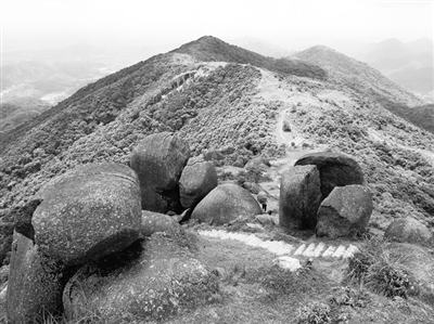 山顶上的这些巨石,使我想起《红楼梦》第一回青埂峰下的那块石头。在九年前那次登山我就曾感慨:青埂峰下物,何来五皇山?也有一篇石头记,请君雾散过来参。我想象中的五皇山顶的石头上,也有一篇石头记在里面。只是因为雾太大,看不清。期待雾散之后再来参阅。说不定雾气蒙蒙的山顶巨石里,真的藏有一篇真文字,奇文字?但是这次雾散了,我仔细辨认每一块石头,在蓝天下,烈日下,我依然找不到那篇文字,我找到的只有石头上的藤蔓,干枯的青苔,依稀仿佛的古生物化石。倒是巨大的石头间隙间芳草青青,野花幽香,惹得黑蜂黄蝶,争相前来献媚讨好、取其精华。尽管这些石头让我联想到青埂峰下的顽石,但是它们可没有青埂峰下那块石头的好运气。没有一僧一道前来峰下高谈阔论,说什么云山雾海神仙迷幻之事,身心性命之学。也没有和尚最后大施佛法,把其中的一块石头变成晶莹明澈的美玉,带下山去,让它去经历大千世界红尘中的一段荣华富贵,悲欢离合。感悟好事多磨,美中不足的深意。说没有,其实也是我的主观臆断。五皇山上深邃的岁月,什么事情都可能发生。只是风雨漫灭,日销月蚀,早已失去记录。当年五皇山上那五个传说中的仙人,他们黄衣朱颜,相与谈笑,给绝望者指点迷津。说不定就有一块石头突然开口说话,有一个仙人经不住苦求,大施道法,把它变成晶莹剔透的美玉,镌刻上一些文字,然后携入红尘之中经历一番,让它受享几年,时间到了,又按约定回到山上,恢复原形。这些山上的石头极有可能曾经到过红尘中经历喜怒哀乐风花雪月,不然它们今天不可能如此冷静,沉默,质朴无华。但是我们也不知道是哪一块曾经下到过红尘,它们最擅长保守秘密,不相互检举揭发,不打小报告。因此,它们才能在山顶上天荒地老地和谐相处。共浴三光日月星,共同消受风雨雷电,雾岚虹霓。由于石头上没有留下文字记录,自然就没有游方“情僧”抄录下去,传之人间。史家也不会留意山顶上这些茫昧混沌之物的故事。久而久之,它们也可能就忘记了自己的故事,忘记自己的经历,甚至忘记了自己的面容。南方很多斑驳的历史,很多往事与传奇,其实都是这样湮没掉的。在风中了无痕迹,在石头上只留下枯死的苍苔。