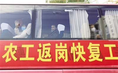 本次发出的农民工返岗专车,外出务工人员全部配发口罩和疫情防控宣传指南,出发前都做好健康体检,车辆座位按50%比例安排,隔一位坐一人,减少运输密度,还安排有专业的医务人员随车保障,随时电子检测体温,让外出的农民工吃上定心丸。