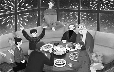 有些年头不回老家过年了,今年除夕夜,我正与家人在刚收拾好的老宅客厅吃年糕、品香茶,沉浸在中央电视台欢乐的春节联欢晚会节目中,不知不觉已接近燃放烟花爆竹的午夜时分。突然,夜空划过几道耀眼的闪电,“轰隆隆”几声闷雷由远而近响彻天空,接着老天夹雷下起了冰雹雨。霎时,风声、雨声、冰雹声和爆竹声混在一起,仿佛在演奏一曲新年交响乐,撼动了整个山村,搅得鸡飞狗跳。