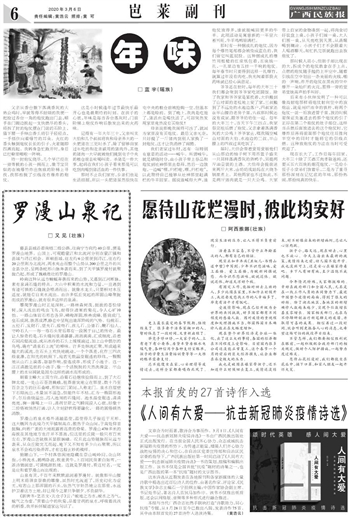 本报首发的27首诗作入选《人间有大爱——抗击新冠肺炎疫情诗选》