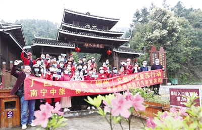4月8日,2020年“诗在壮乡 何必远方——广西人游广西”文旅行业复苏行动“柳州人游柳州”首发团走进三江侗族自治县八江镇布央仙人山景区,300余名游客畅游茶乡,赏红枫、品糍粑、观茶园、采春茶,醉享“有氧生活”,按响了百里侗乡风情游的“重启键”。今春,该县一手抓疫情防控,一手抓经济建设,出台旅游产业发展引客“硬核”政策,大力引客到三江,全力提振旅游行业信心,激发旅游市场活力,全力助推侗乡决战脱贫攻坚。