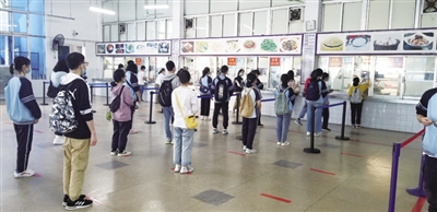 4月,广西民族高中校园中鸟语花香,春意盎然。受新冠肺炎疫情影响,往日4000多人的校园,现在只有高三年级700多名学生和教职员工在校,而且大家都错峰出行,校园显得格外安静。4月16日,笔者在校园内看到,所有班级和宿舍一拆为二,变为小班教学和间隔住宿,学生座位和床位间保持1.5米距离。错峰上教室、错峰放学、错峰就餐,学生在宿舍、教室、食堂三点一线间错峰出行,取消所有集体聚集活动。学校给师生每日配发2个口罩,师生佩戴口罩上课。师生坚持每天晨午体温检测和疫情零报告。相关活动场所按要求配备水龙头、洗手液,每天对教室、宿舍、办公场所进行消毒。学生用餐使用消毒中心提供的消毒餐具……与往昔相比,同学们的学习和生活发生了很大变化。