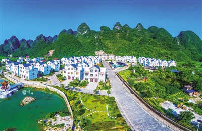 环江毛南族自治县大安乡可爱新村主要通过产业带动、能人带领和就业扶持,实现全村脱贫致富。图为可爱新村新风貌。图片由环江县委宣传部提供