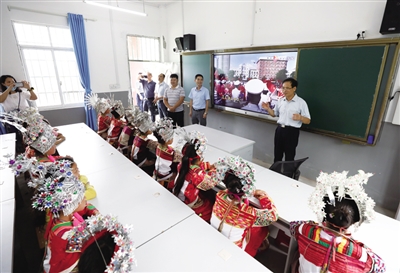6月1日,三江侗族自治县老堡乡曲村举行梦想教室启动活动,深山瑶娃们通过梦想教室视频连线大山外的上海爱心人士,表达感激之情。