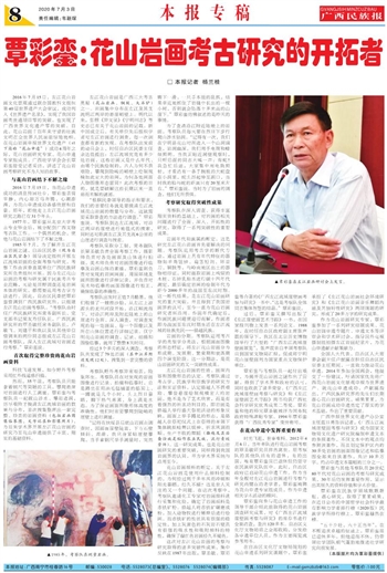 作为花山岩画研究专家,覃彩銮参加了一系列研究结题成果、花山岩画申遗专题片、申遗文本等评审会和学术研讨会,指导国外电视摄制组拍摄左江岩画纪录片,为花山申遗献计献策献力。