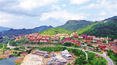 南丹县“千家瑶寨·万户瑶乡”易地扶贫搬迁旅游开发项目里湖片区安置点的332栋具有瑶族特色的房子依山而建。初夏时节,草木葱茏,与草木交相辉映的联排房独具魅力。从空中俯瞰,宛如人间仙境,美不胜收。