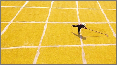 后来,家家起楼房,楼顶都留出一块平台作为晒谷子用,再也不用担着谷子到晒谷场去晒了。