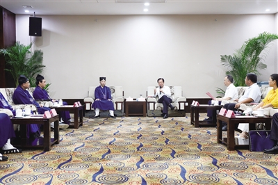 7月17日,自治区党委常委、统战部部长徐绍川会见广西道教协会新一届领导班子。自治区党委统战部副部长,自治区民宗委党组书记、主任农融,自治区民宗委党组成员、副主任梁柳宁参加会见。