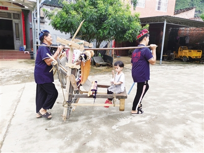 “我织土布来咯,日子红火过咯!”织娘们一边唱着欢快的山歌,一边熟练地投梭、拉扣、踩踏板……在有“美女村”之称的板池屯,这样的场景几乎每天都能看到,伴随着“哐当、哐当”的节奏感和韵律感,经纬交织间,各色棉线最终变成了一幅幅色彩绚丽的美丽壮锦,从过去传统自用产品,到现在走出广西,走出国门。
