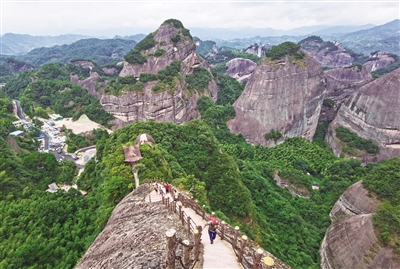 初秋时节,素有“丹霞之魂”之称的资源县八角寨丹霞地貌风景区迎来众多全国各地游客参观游览,呈现暑期旅游客流高峰。