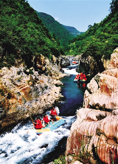 “最多的一天发船120多艘。”看准商机在五排河漂流返程中途筹建“烟竹汽车营地”的康桂福说,“汽车营地与五排河漂流形成优势互补,使游客的吃住行玩形成一套服务体系。”烟竹汽车营地是隶属于五排河旅游开发有限责任公司的一个子公司。康桂福4年前也是建档立卡贫困户,去年脱的贫。据其介绍,像他这样的贫困户整个公司有几十户,都是五排河沿岸的车田、两水的苗瑶民众,分别从事船工、售票、安全管理等不同的工作。工作之余,他们大力发展种养产业,还加入西红柿、辣椒等种植合作社,现在都已脱贫摘帽。