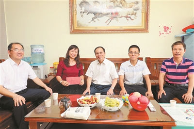 图为翚永红(中)慰问该校教师代表,送去节日的祝福和问候。