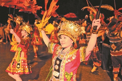 随着国内防控疫情的好转,旅游业又兴旺起来。9月12日晚,融水苗族自治县在民族体育公园开展吹芦笙、跳踩堂舞、拉鼓、玩竹竿舞活动,吸引众多观众观看,热闹非凡。