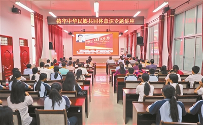 为进一步教育引导广大师生增强中华民族共同体意识,持续推进学校民族团结进步创建,全力铸牢少数民族师生的思想意识,9月29日下午,由自治区社会科学界联合会主办、广西道德教育学会承办的“铸牢中华民族共同体意识”专题宣讲会在广西民族中等专业学校(广西壮文学校、广西民族高中)开讲。