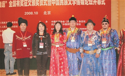我作为壮族作家的代表,有幸出席了这次活动。那天,我身穿壮族服,头戴壮锦帽,怀着喜悦的心情走进了庄严的人民大会堂。在这里,我认识了中国作家协会原党组副书记、中国少数民族作家学会会长玛拉沁夫,他的到来,真让我喜出望外。玛拉沁夫是著名的蒙古族作家,我读高中时就看过他的长篇小说《茫茫的草原》,唱过他的歌曲作品《敖包相会》,从心底里非常崇拜他,很想见到他,想不到今天有幸实现了零距离的接触。不少文友和我一样,感到与名家和领导在一起,机会难得,应当好好珍惜,并好好表现。那天,还没有举行仪式之前,先到会场的各民族作家、诗人,有的抓紧在会场与领导、名家合影留念,有的三三两两交流创作经验,有的吟诗作对,有的朗诵自己的作品。我也不甘寂寞,在会场唱起了壮族山歌: