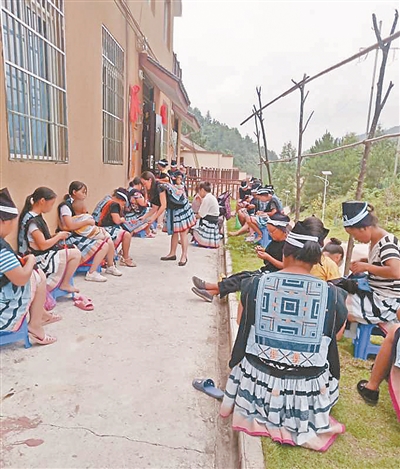 女儿黎秋亿从小在母亲的熏陶下长大,对这门民族传统手工技艺也有着特殊的感情,高中毕业后她就回家帮母亲黎凤珍经营染坊,有时染坊遇上特殊情况,没法集中作业,她还会把针线、底布一一送上门。