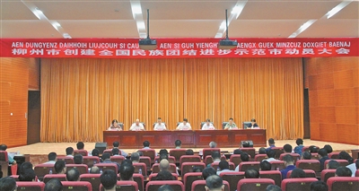 柳州是广西的工业重镇,也是一个多民族的城市,全市少数民族人口222.98万人,占全市总人口的56.66%,有2个自治县、6个民族乡。党的十八大以来,柳州市委、市政府坚持以习近平新时代中国特色社会主义思想为指导,带领全市各族人民共同团结奋斗、共同繁荣发展,推动柳州经济各项事业健康发展。2019年全面启动创建全国民族团结进步示范市工作,围绕“中华民族一家亲,同心共筑中国梦”总目标,以铸牢中华民族共同体意识为主线,确定了“工业辐射带动,城乡携手共建,交往交流交融,共同繁荣发展”的创建思路,按照“一年强基础,两年见成效,三年创示范”三个阶段稳步推进创建工作,工作成效日益凸显,覆盖面和影响力不断扩大。