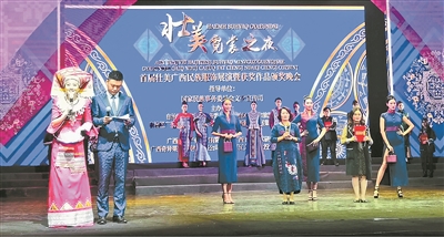 本报讯(记者 何宗威)11月20日晚,南宁剧场成为美仑美奂的霓裳秀场——首届壮美广西民族服饰展演暨获奖作品颁奖晚会在这里隆重举行。国家民委文宣司一级巡视员、 副司长钟廷雄,自治区党委宣传部副部长、自治区广电局党组书记、局长张虹,自治区民族宗教事务委员会副主任翚永红,自治区文化和旅游厅副厅长唐正柱,广西文化产业集团有限公司党委副书记廖荣生等领导出席晚会。