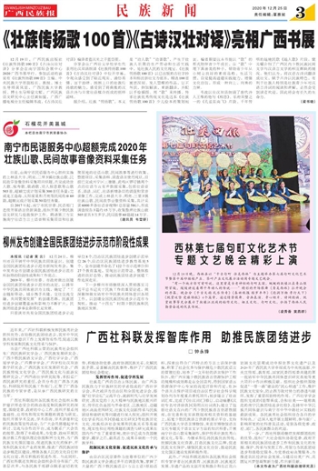 《壮族传扬歌100首》《古诗汉壮对译》亮相广西书展