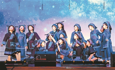 在开幕式上,罗城仫佬族自治县第二小学的仫佬族童声合唱团演唱了《仫佬山娃》《月亮光光》两首原创歌曲,美妙的童声让现场观众感受到浓郁的仫佬族风情。