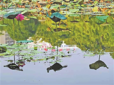 傍晚散步,走进这爿寂静的风景,本来就是为了排遣白日里的各种纷扰。这么想着,看看莲池,荷茎弯折于水面构成的一个个线段影像画面,竟然瞬间抓住了我心中的某些意趣取向。于是,我把手机摄像头对准水面,用手指在屏幕上把一切多余的芜杂物影逐一排除,只将简单与纯粹留在我喜欢的画面里,屏息静气,小心翼翼,把萧然寂寥的背景掀开,摄下了一组极美的风骨碎片。细细赏玩,竟觉得简洁如童画涂鸦,分明透着纯纯的童趣。