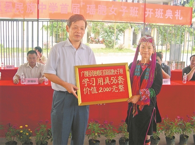 2008年初夏,民进两广省(区)委会和中共上思县委统战部、上思县教科局共同组成联合调研组,深入南屏瑶族乡开展教育调研后决定:由民进两广省(区)委会联系爱心企业家资助上思县民族中学开办一个瑶族女子班。由上思县教科局负责动员发动瑶族女生入读,县教科局又将这一任务交给民族中学具体落实。