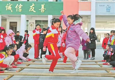 1月12日,靖西市化峒镇中心小学师生在进行丰富多彩的大课间阳光体育活动。