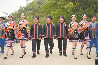 据覃庆华介绍,目前,古寨瑶族乡党委、政府指导成立了11个村级文艺队、30个以上的屯级文艺队,每个文艺队每年举办文艺演出20场次以上,“打榔舞”“瑶乡剪刀歌”被列入自治区级非物质文化遗产名录。以此为依托,该乡将产业发展与自然景观资源相结合,连续成功举办7届“南宁马山·古寨瑶乡金银花节”和文化旅游美食节民俗风情展演等大型活动,着力打造包括1个自治区3A级景区、1个自治区3星级乡村旅游区和4个星级农家乐在内的一批景区景点和农家乐,每年吸引近3万名游客前来观光旅游,实现增收百万元以上,实现三产融合发展增内力、强动力。