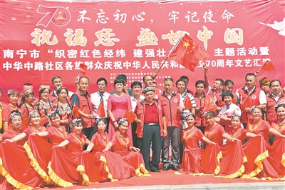中华中路社区充分尊重少数民族风俗和宗教信仰,积极组织开展各类民族节庆、联谊会、座谈会、心连心等活动,利用春节、元宵节、“壮族三月三”、古尔邦节等节庆举办百家宴活动,成为社区一道亮丽的风景。该社区针对各族群众文体爱好广泛、资源丰富等特点,先后组建了中华中路社区少数民族文艺团、蒙古包艺术团、军乐演奏团、腰鼓队等5支文艺队,通过自编自导、自弹自唱,以群众喜闻乐见的形式,促进了各民族之间的文化交流,拉近了党和群众的距离,拉近了各民族之间的距离,使得辖区各民族更加和谐。