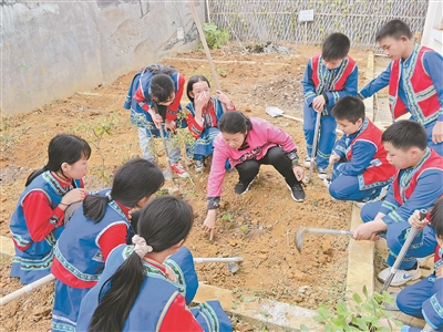 3月11日,植树节来临之际,百色市大华民族学校组织学校党支部成员及少先队员代表开展迎建党100周年劳育实践活动。在该校劳动实验基地“创和园”,小队员在老师的带领下种植葫芦,他们用小小的手臂挥动铁锹铲土、培土、移苗、浇水……到处都是忙碌的身影和劳动的欢声笑语。“创和园”的种植活动结束后,党员们扛起树苗,小队员们拿着劳动工具马不停蹄地来到指定种植区,师生共同种下树苗。
