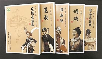 开展广西国家级传承人调查研究课题,整理出版《广西国家级非物质文化遗产系列丛书》(37册)《守护与传承——广西国家级非物质文化遗产项目代表性传承人》《美丽广西 多彩非遗》,筹备出版《广西非物质文化遗产代表性项目图典》。这些书客观、全面地记录了非遗代表性项目的内涵、表现形式及其存续状况,为人们了解、研究,进而开展传承、保护和传播工作留下了宝贵资料。