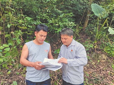 土地是农民的命,祖祖辈辈居住的房子寄托着农民的乡愁,蓝茂东很理解乡亲们的顾虑,一时不知怎么说服群众。正当他苦闷发愁时,思林镇党委派出了常驻工作组到龙邦村,和村干部一起入户宣传动员,给蓝茂东工作注入了动力。鉴于驻村干部成员熟悉政策但不会讲瑶话,村“两委”成员和党员会讲瑶族语言,但对政策解释不那么到位,蓝茂东让驻村干部负责讲解国家政策,村干负责瑶族语言翻译,重新逐户动员,摸清群众的顾虑和具体要求。