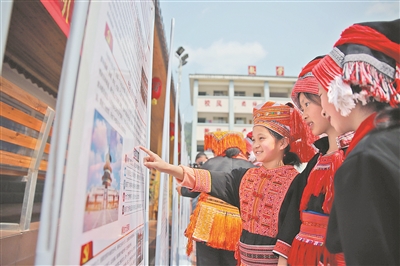 图为瑶族学生在展板前认真学习党史。(通讯员 梁春玉)