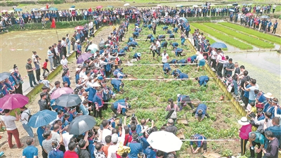图为挖土豆比赛现场。