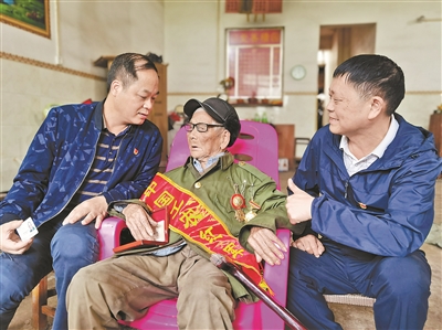 “今年中国共产党100岁了,100年来,党带领我们从站起来到富起来到强起来,取得了让世人瞩目的成就。”近日,都安瑶族自治县组织党员来到抗战老兵、百岁老人韦贞江家中,聆听老人讲党的光荣传统和优良作风,以及党史中的峥嵘岁月。