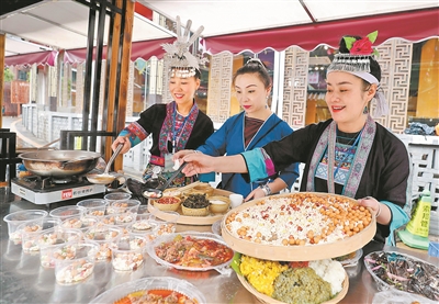 5月19日是中国旅游日,也是侗族传统节日敬牛节,三江侗族自治县在月也侗寨举行祭牛仪式和糯食文化展示活动,通过神秘的祭牛仪式,展示五色糯米饭、打侗族油茶等丰富多彩的地方特色美食,向游客推广侗族习俗和特色饮食文化品牌。