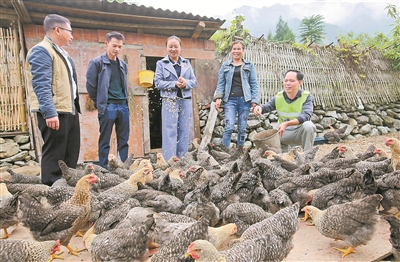 “何书记不但带我们外出学习,还引导我们怎样自主发展产业,自主寻找销路。”谈到发展产业时,赵继锋感激地说。2017年,为使120多亩高山反季节蔬菜卖得更高的价钱,何海云引导合作社将自产蔬菜推到柳州、南宁等地,还为蔬菜注册了“瑶山绿”商标,让高寒山区的蔬菜有名有姓地走出大山、走向大城市。以此为契机,何海云不断培育党员致富带头人,引导乡电商中心带动全乡60%贫困户养殖“瑶乡土鸡”和田螺。各村示范合作社带动17.8%贫困户发展产业,新型经营主体带动全乡70%以上的贫困户发展产业。乡电商中心年销售量达600万元,为群众带来实实在在的增收,促进农民增收致富。目前,全乡培育党员致富带头人30多名,农业合作社20多个,除主打的土鸡、田螺、高山蔬菜、中草药以外,各村都有代表性灵芝、竹荪、食用菌、香梗糯、禾花鲤、煨酒、竹筒酒、红豆杉果酒等特色产业。