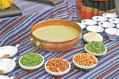 麻”,即要多放一点油,水要完全煮开,火要跟得上,要用油茶杵对茶叶进行揉搓捶打,动作要快而麻利。恭城油茶色泽金黄、香气浓郁、滋味醇厚,具有消食健胃、驱湿避瘴之功效和强身、健体、养生、祛病的药用价值。