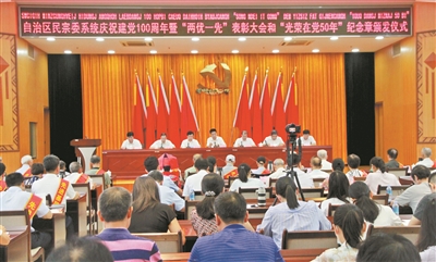 6月30日,自治区民宗委系统庆祝建党100周年暨“两优一先”表彰大会和“光荣在党50年”纪念章颁发仪式在南宁举行。自治区民宗委党组书记、主任班忠柏作庆祝中国共产党成立100周年讲话。