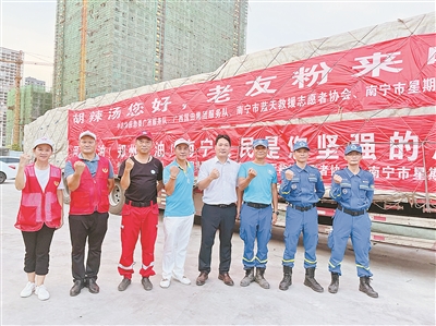 连日来,河南持续遭遇强降雨天气,郑州等城市发生严重内涝,人民的生命财产受到严重损失。在了解到河南的灾情后,7月21日,中志协应急委广西服务队、南宁市蓝天救援队志愿者协会、南宁市星期六爱心公益志愿者协会共同发起联合发出通告,号召广大爱心人士积极投身支援防汛救灾工作中,在第一时间内各会员单位、爱心企业、爱心人士纷纷慷慨捐赠,并由南宁广播电视台为主体牵头对接郑州当地各部门。然而,由于受灾情影响外省通往河南道路一直无法通行,救援物质只能原地待命,直到7月23日下午道路恢复通行后才能装车启程。据悉,这次捐赠物资有方便面、矿泉水、面包饼干、消毒液等总共125吨,因为捐赠时间有先有后,所以物资分五批次运送,截至29日下午记者发稿时,最后一批物资已运达郑州。