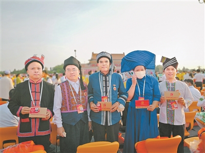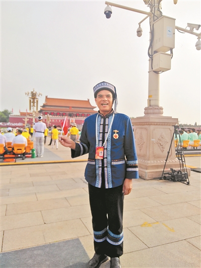 连日来,一位身着瑶族盛装的中年汉子不停地活跃在机关学校、田间地头,为广大干部群众宣讲中国共产党建党100年波澜壮阔的历史,讲述7月1日在天安门广场参加建党100周年庆祝活动的所见所闻,所到之处都赢得干部群众的阵阵掌声。他就是退伍军人、全国民族团结进步模范个人、富川瑶族自治县新华乡龙集村党支部书记、村委会主任黄进满同志。