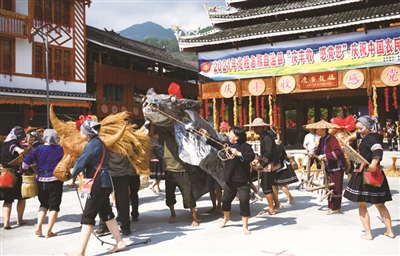 ▶9月19日,桂林市龙胜各族自治县举行“感党恩·庆丰收”庆祝中国农民丰收节主题活动,当地各族群众通过开展舞草龙草狮、“闹春牛”、弹唱琵琶歌、跳多耶舞、打糍粑、特色农产品展销等活动,欢庆丰收。