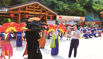 9月11日上午,中央广播电视总台新闻频道“走进乡村看小康”节目走进贺州市平桂区槽碓村土瑶山寨进行直播。节目从瑶寨山区风光、瑶族风情旅游、瑶乡经济发展等角度展示了土瑶山村优美的自然风光和独特的民俗风情,展示了土瑶同胞经过脱贫攻坚战,从一个边远偏僻的贫穷小山村蝶变成“全国脱贫攻坚先进集体”的华丽转身。