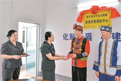 南宁市兴宁区人民法院五塘人民法庭设立全市首个“族老”矛盾调处中心,聘请两位“族老”为法院特邀调解员,发挥其调解优势,加强诉源治理工作,把矛盾化解在最基层。近三年,该法庭利用“族老调解”制度协助调处案件1000余件,无一发生矛盾激化现象。