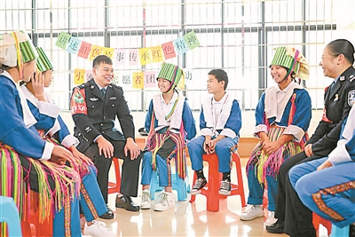 为做好少数民族群众服务和管理工作,促进民族团结,自今年5月起,贺州市公安局西湾派出所定期到辖区民族学校和移民安置小区“青少年之家”开展民族团结进步结对共建活动,对学生进行法治教育和心理辅导,既融洽了警民关系,又有力推动了青少年零犯罪零受害“双零社区(村)”的建设。图为11月24日,民警与少数民族学生一起开展心理拓展活动。(甘 勇/摄影报道)