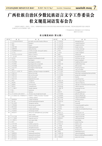 广西壮族自治区少数民族语言文字工作委员会 壮文规范词语发布公告